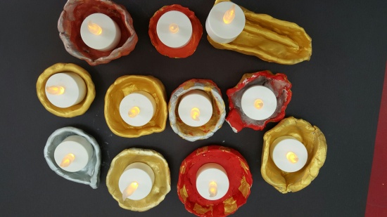 In class, we learned about the festival and how is it celebrated. We also made dias from clay and painted them.